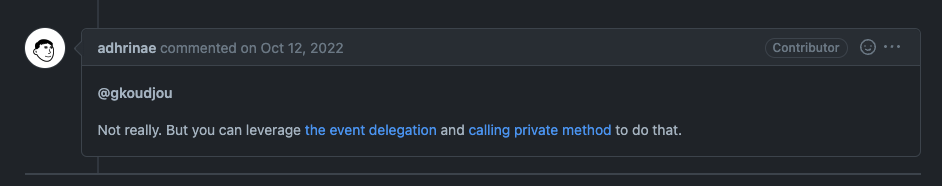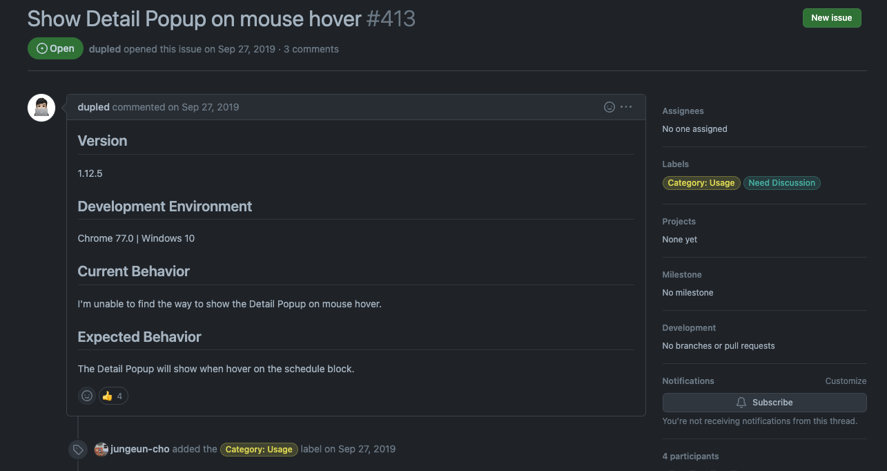 당연하게 하려고 how to add Mouse Hover Event on Toast Calendar를 검색해보았고 아래 사진과같은 답변을 보게되었고 아찔해졌다.