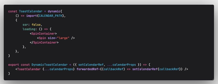 - Dynamic import 해온 캘린더 컴포넌트를 사용하는 컴포넌트