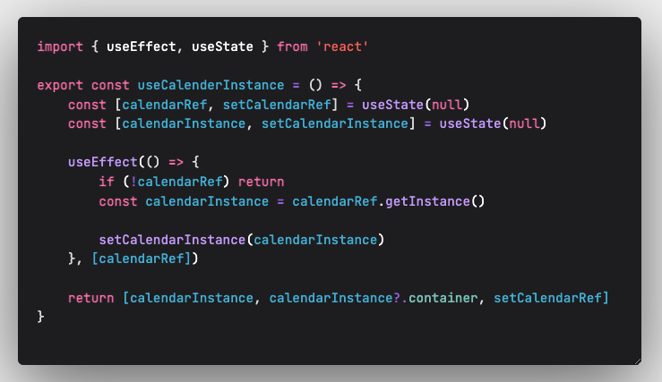 만약 인스턴스가 필요없다면 훅스 사용을 하지않고 캘린더 컴포넌트를 불러와 사용할수있기에 확장성있고 유연한 코드 작성이 되었던 시간이었다.