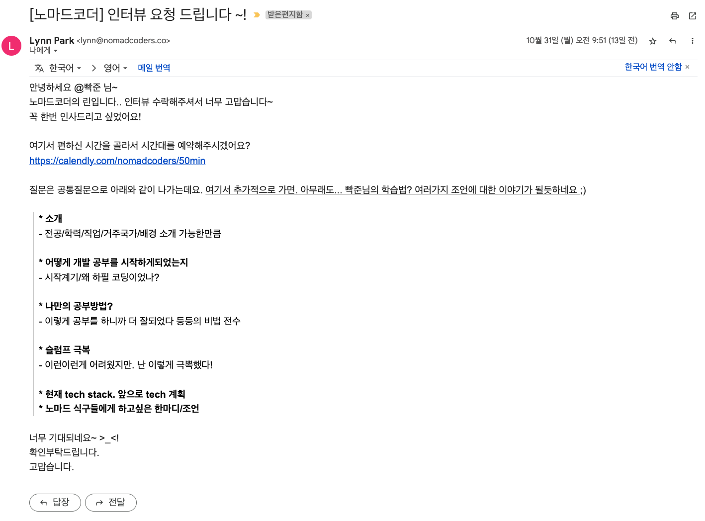우선 노마드코더에서 인터뷰요청을 받게된 배경부터 설명이 필요할거같다.