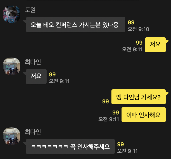 개발바닥 2사로 오픈카톡에서 테오컨퍼런스 가는 사람을 묻는 분이 계셨었고, 나는 당당하게 저요 라고 했는데